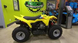 The 2025 Suzuki QuadSport Z90 is the ideal ATV for adult-supervised riders ages twelve and older to develop their off-road riding skills. Convenient features like an automatic transmission and electric starter help make this ATV easy to operate. To help young beginners grow into accomplished ATV riders, the Z90 includes a keyed ignition switch and throttle limiter to adjust engine performance to the operator’s skill level.